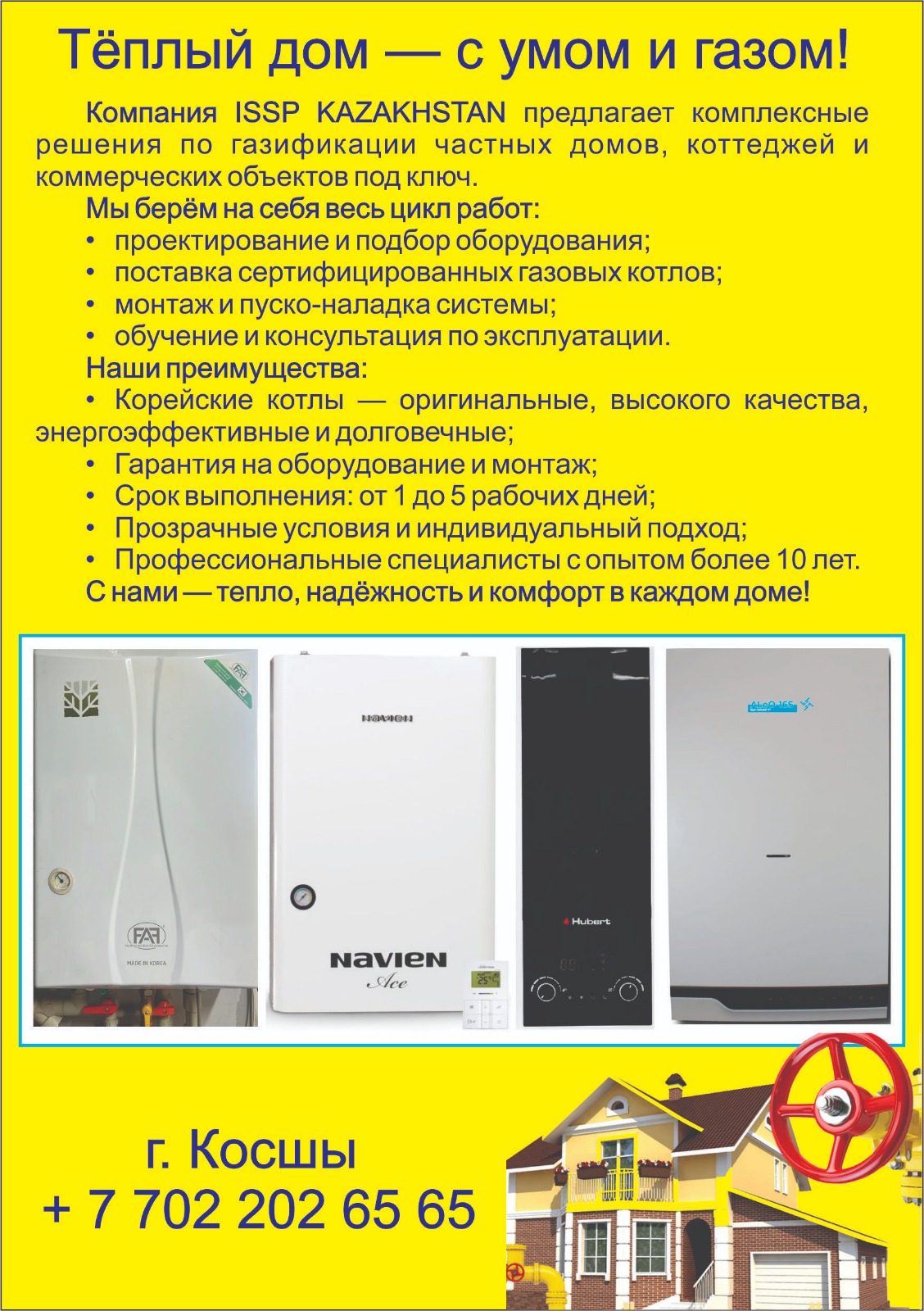 Мы используем только сертифицированное оборудование и надёжные корейские котлы, рассчитанные на казахстанские климатические условия.
